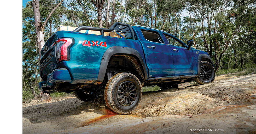 Muscular blacked-out fender flares, large 18-inch alloy wheels & expansive hood enhance its off-road-ready aesthetic (V9 only). A locking rear diff on 4x4 models, ground clearance of 240mm, combined with its powerful performance, ensures excellent off-road capability and the ability to handle rough terrain with ease.